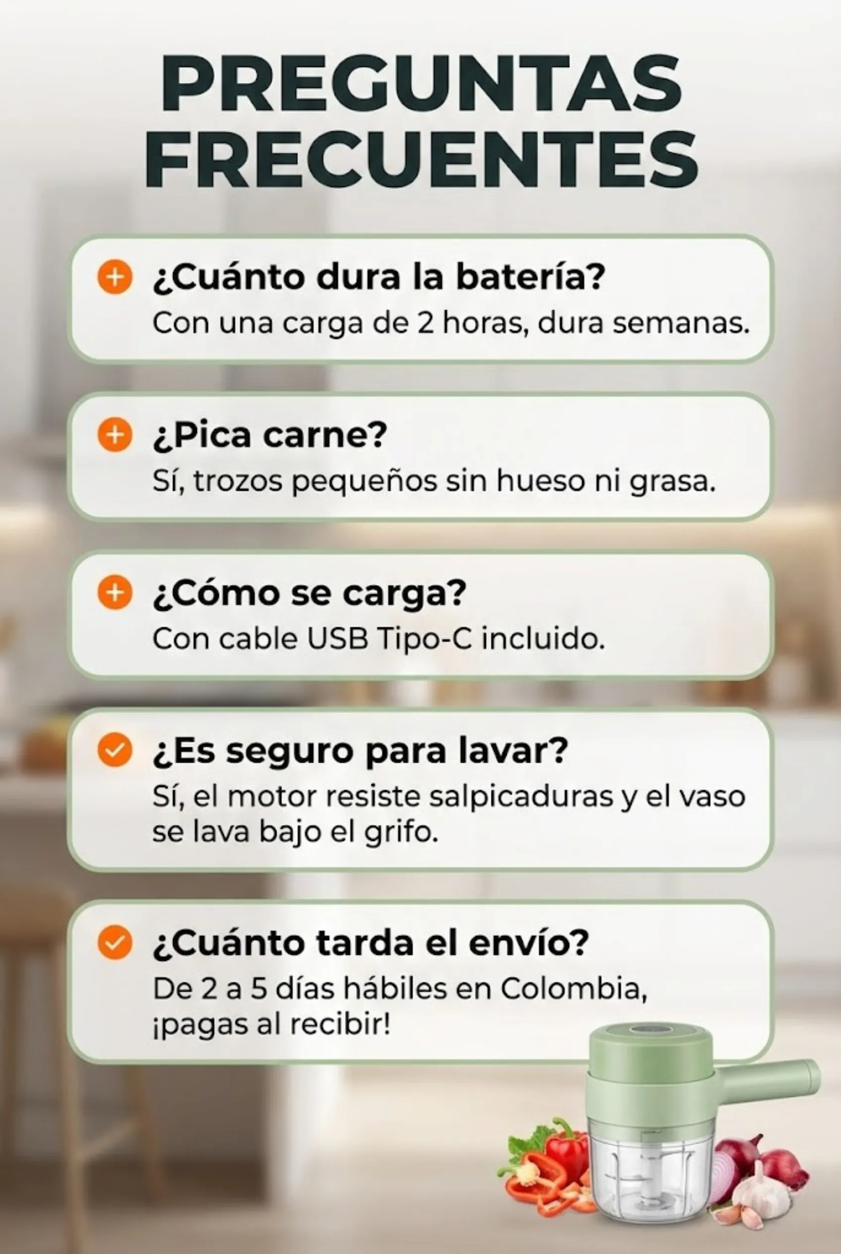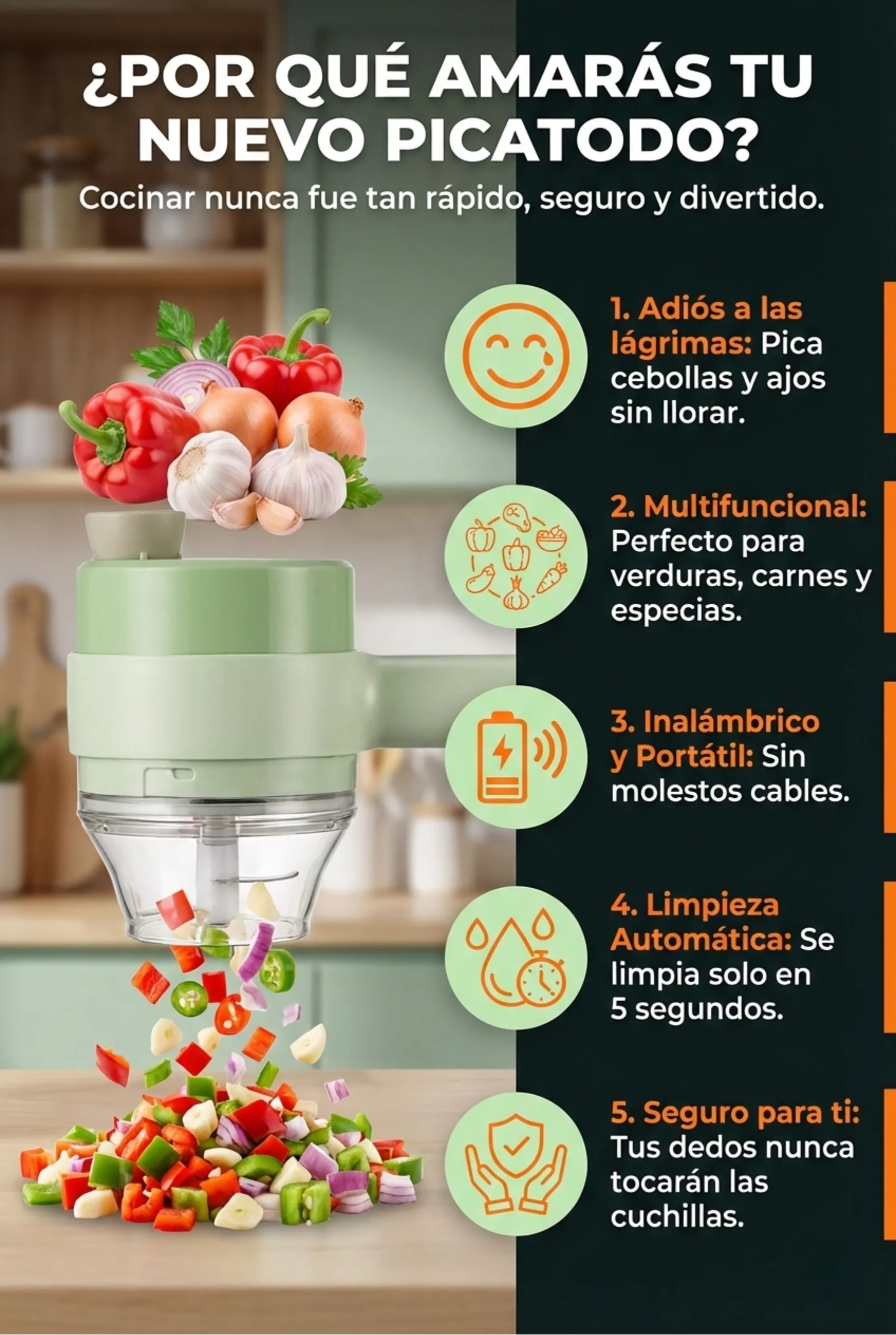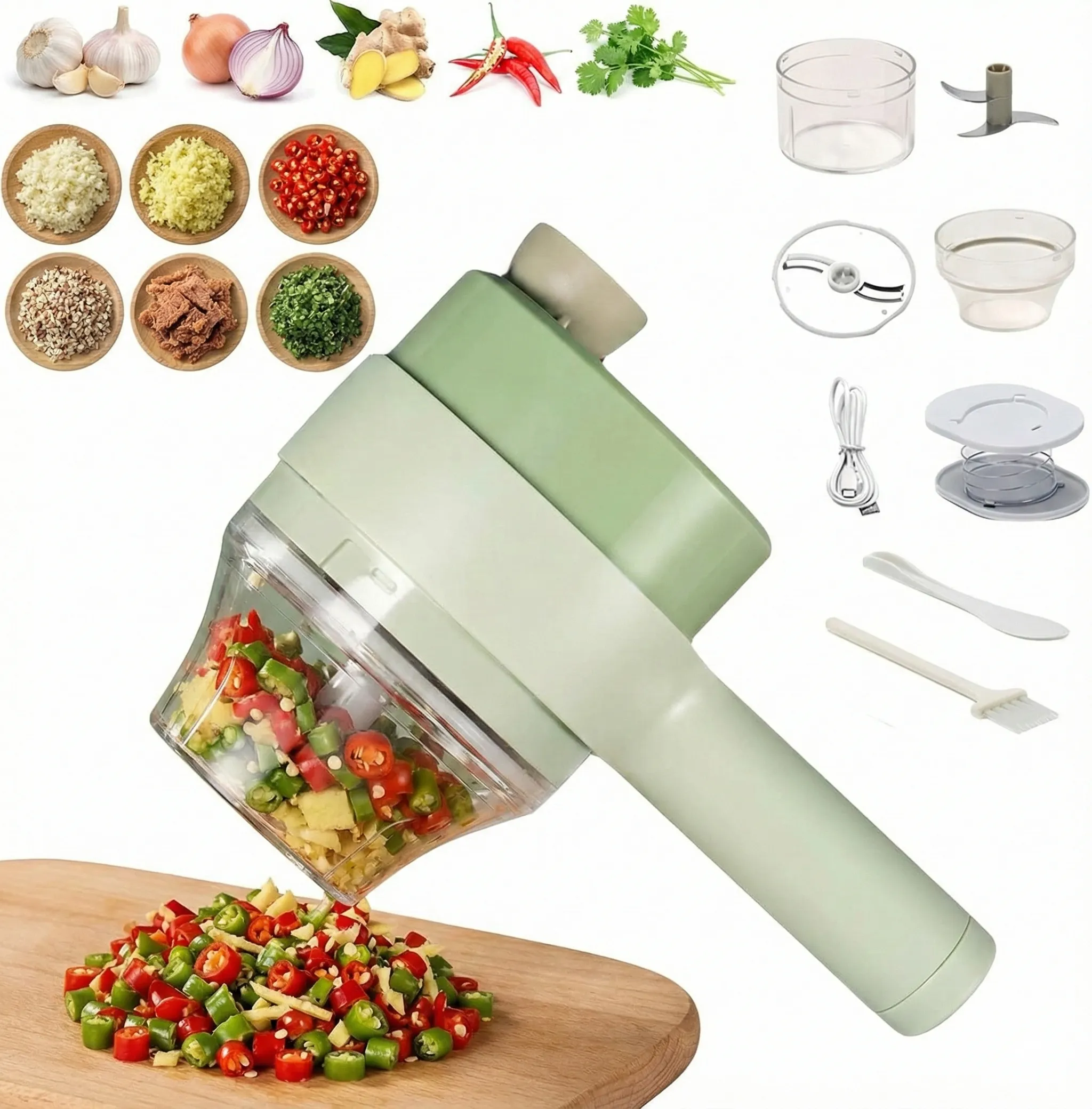 Juego multifuncional: puedes tener un cortador eléctrico de verduras y un molinillo de carne eléctrico y un cepillo de limpieza eléctrico al mismo tiempo para el tiempo.