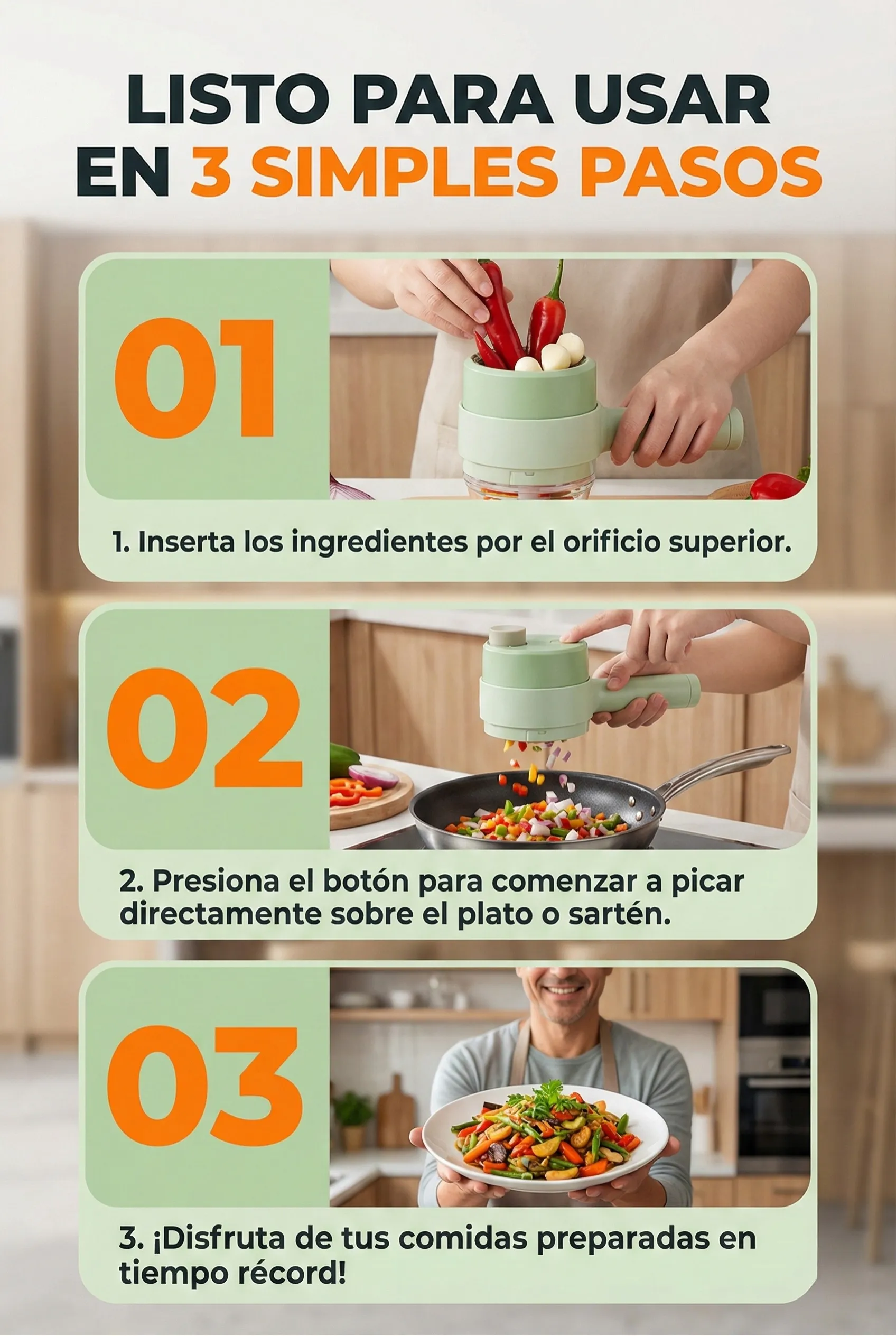El puerto de alimentación abierto evita la apertura frecuente de la tapa, y también se pueden insertar tiras largas de ingredientes. Mango ergonómico y cómodo que es estable y no se suelta.